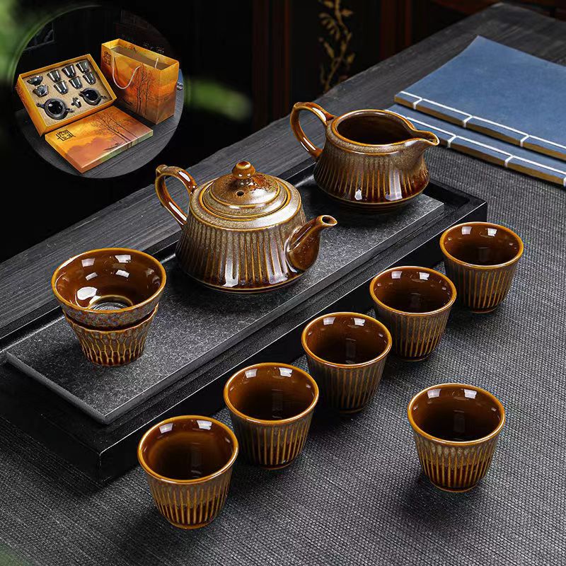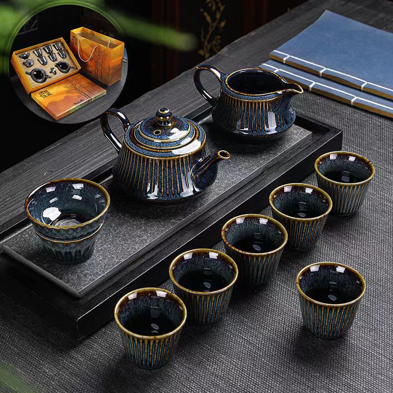 25分鐘前【汀和大福】窯變古龍拉絲天目釉建盞1壺1茶海6茶杯茶具套裝 - 2組1780NT$(老闆推薦)
